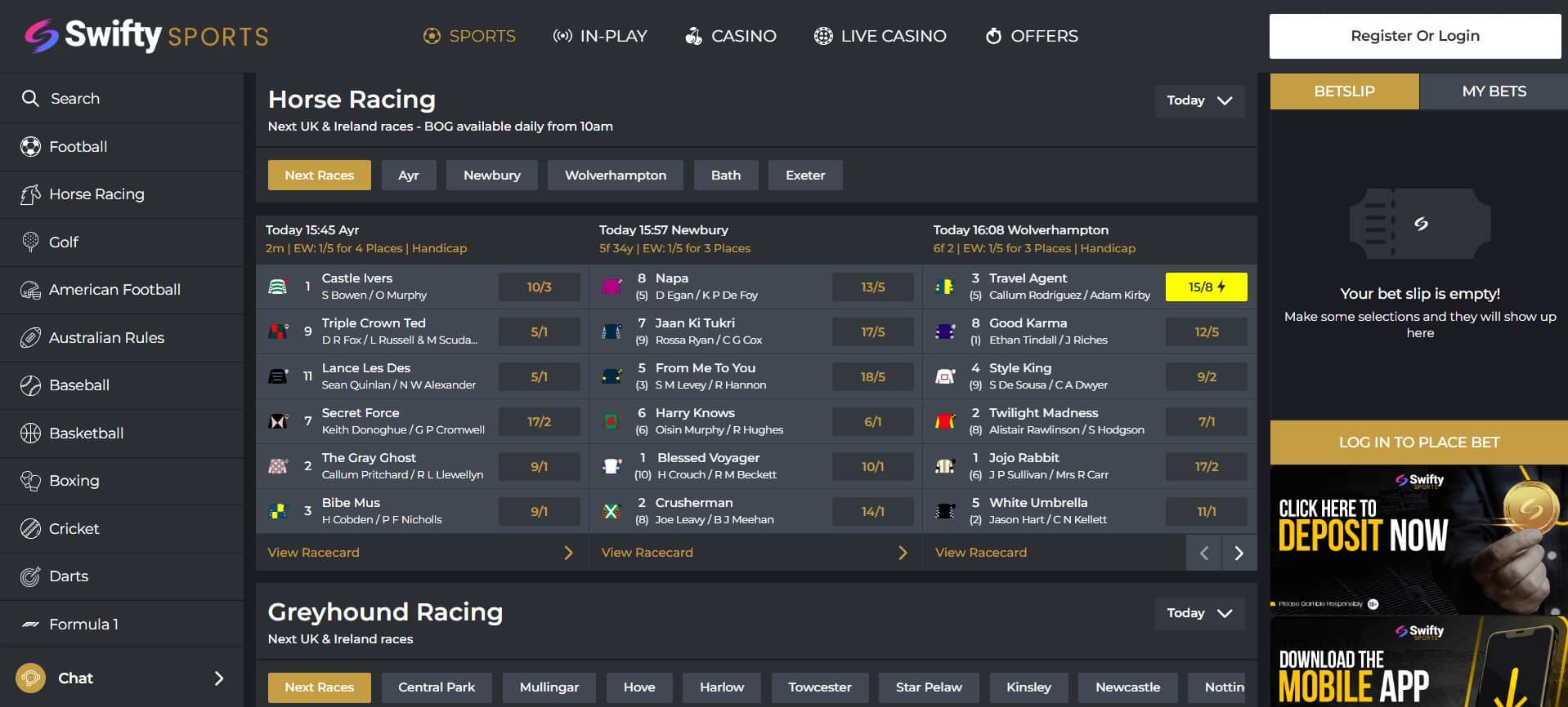 UK punters will have plenty of options to be on sports with the comprehensive coverage that Swifty Sports offers. The most popular disciplines like football and horse racing are widely available for pre-match and in-play betting and you'll also be able to wager on tennis, ice hockey, volleyball, basketball and so on. Sure enough, you'd be offered plenty of niche sports, too, like darts, handball, hurling, motor sports, rugby, MMA, snooker, table tennis and more.
