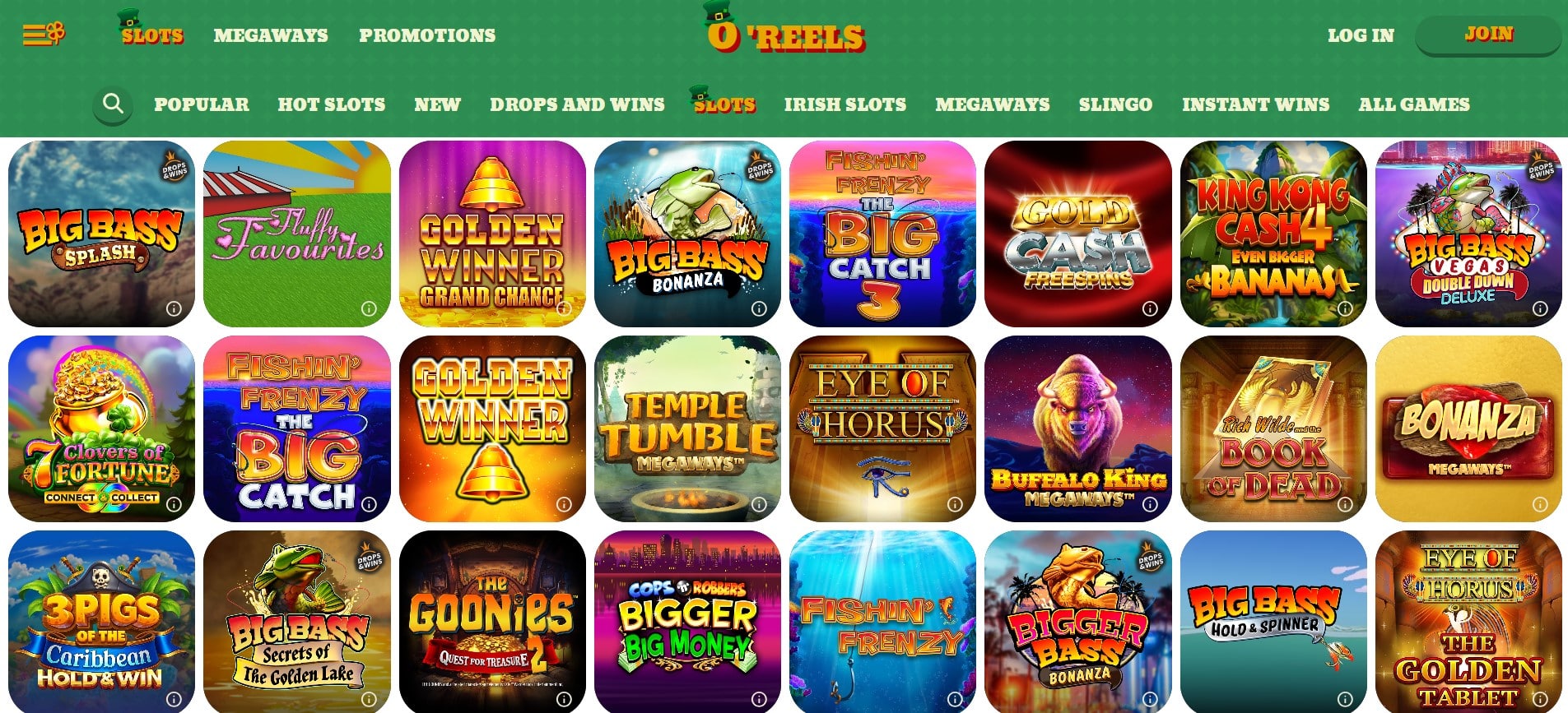 O'Reels casino review of first deposit bonus: Claim free spins on Big Bass Splash on a minimum deposit and wager of £20