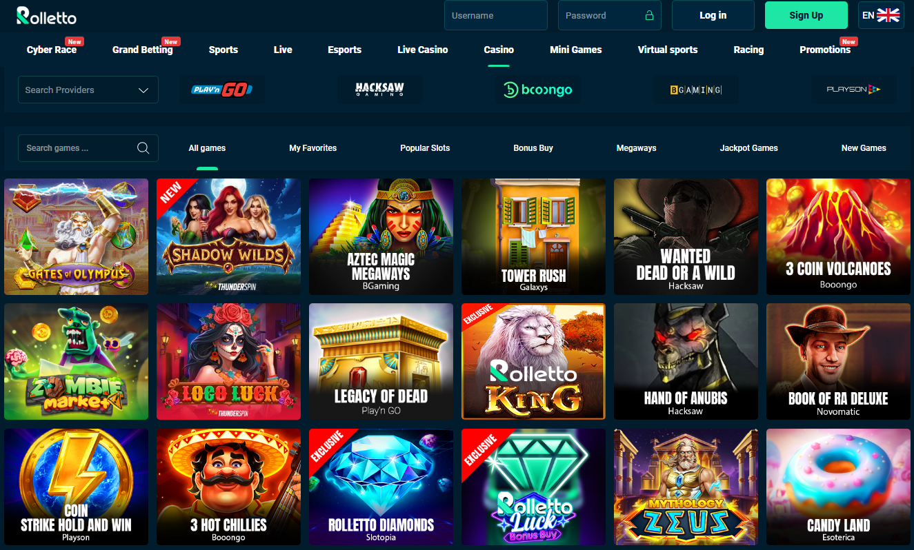 The slots section is quite an extensive one and provides you with a great gaming experience. You'll be offered thousands upon thousands of titles with many popular slot games like Viking Gold, King Kong Cash and Aztec Magic Megaways. Yes, Rolletto provides you with plenty of games with the Megaways mechanics but they also feature classic fruit or Vegas-themed games, many interesting mythological, fishing and other themes, as well as plenty of bonus features. They've got games with free spins, mini rounds, progressive jackpots and so on. And one of their best features is that here you'd be able to find Bonus Buy games, along with Drops & Wins and various others.