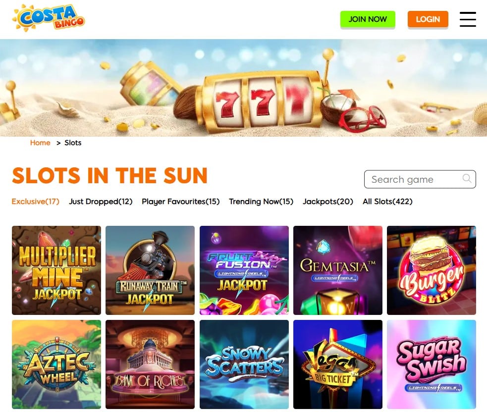 Top games at Costa Bingo: Slots, bingo and more